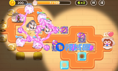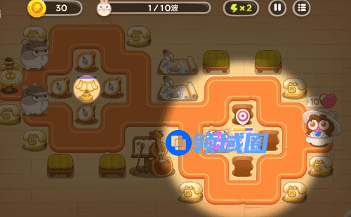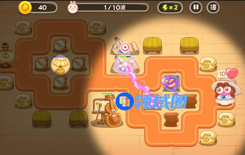 第2波过来前,魔法球和导弹塔集中打上方的建筑,打完1个把灯塔打一下,跟着打兔子即可。有钱的话,先把这2个炮塔升满。3级导弹塔打前面2波的兔子搓搓有余。