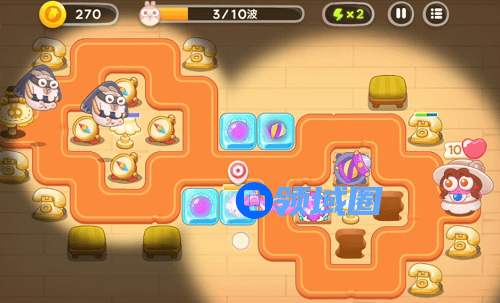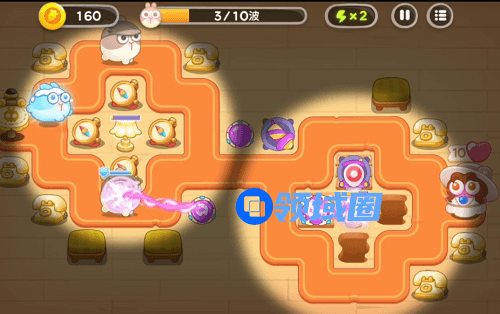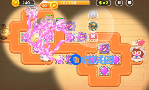 3波以后基本上都是重复的,需要注意的就是导弹塔一定要够,这关的风筝兔比较多,然后魔法球布置在中央,能实现周边火力全覆盖。冰冻兔有时间的话,就控制下,让它在炮塔少的地方死,没时间的话冻住了炮塔,尽快打开即可。