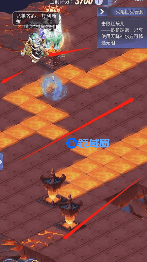 ②地图选择:我已经打过一遍了,一共有四层的,第二第三层能自选通往哪个地图(这个就是追求积分了,有些地图怪多,积分就能打高点),看个人实力进行选择。目前测了最简单通关的是铁扇+犀牛(下面图示我选了牛魔是因为刚开始玩,但是牛魔是怪多抢榜打高分的,有实力的朋友可以选择牛魔)。