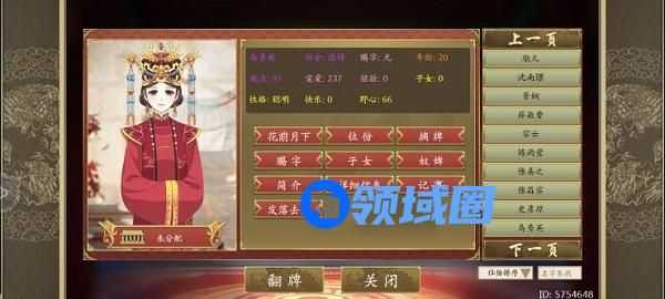 7.王氏:京师→东城区→下月→东城区→上前阻止→下月→东城区→重复(下月→东城区→王氏→对话)操作直到出现鸡蛋或搬离剧情→重复(下月)操作直到出现贡果剧情→东城区→是→轻轻拥住她→带她回宫→下月→儿臣对这位姑娘一见钟情→其实儿臣与这位姑娘相识已久→其父已亡,其母改嫁,品性纯良,温柔体贴→已经许过人家→重复(下月→慈宁宫→讨论王寡妇的事)直到出现太后召见剧情→下月→王清容→抱得美人归。