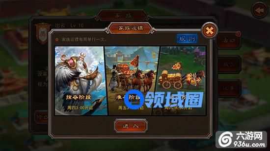 掠夺阶段:家族成员通过PVE打BOSS,通过伤害量,获得粮草(粮草会转化成镖车,打的越多,镖车品质越好,护送奖励越多)