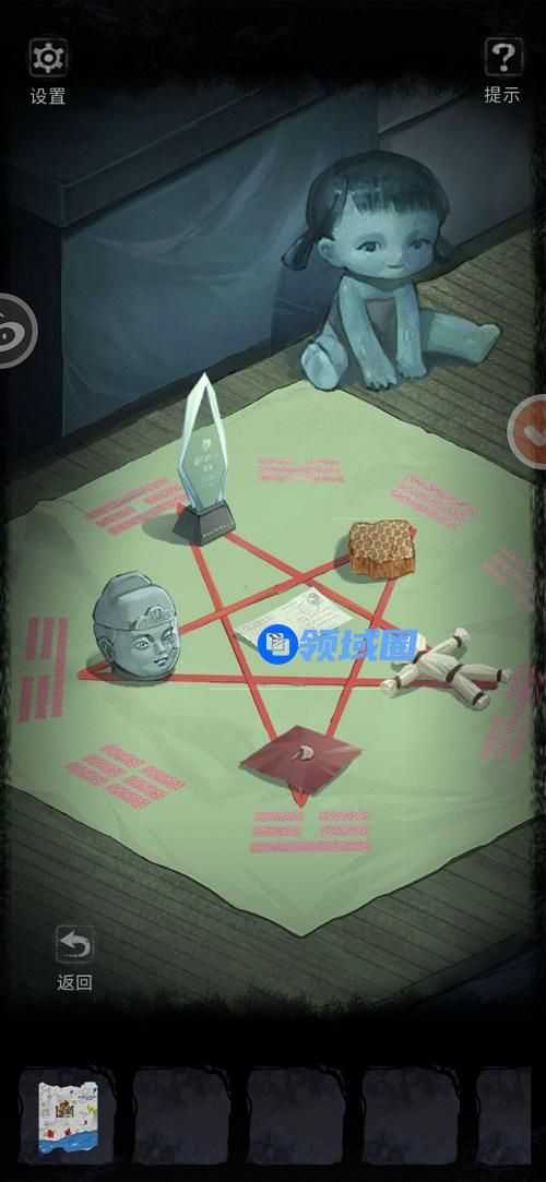 12、到院子的大门用指甲刀给爸爸剪指甲。回到阁楼,把有图案的布放到床上,按照《降头》中所说的,如图所示放上物品。