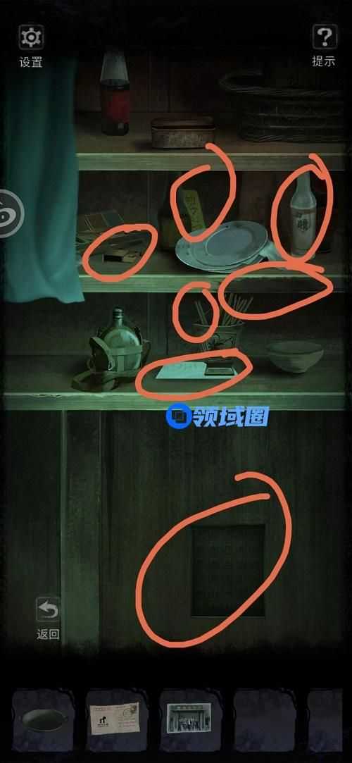 1、过完剧情然后回到楼道口,点击右侧邮箱得到明信片,到左侧院子,查看右方的宣传栏,点击左侧照片,接着回到楼道口上楼,左侧第二个门上得到八卦镜,右侧柜子上方得到铁锅,下方的柜子上的锁结合柜子顶部,大树(楼道口右边)下方右侧红灯笼旁,大树右侧沙坑右下角,院子里宣传栏照片背后这四个地方的正字笔画得到密码(4360),打开后右上方得到旧钥匙,左上方得到厨房照片,左下方有一本奇门布阵入门。用旧钥匙打开最左侧的门即厨房。进门