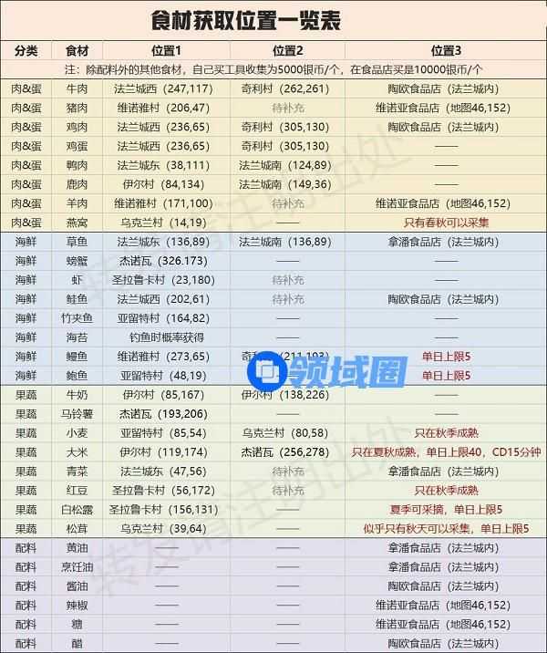 1、部分食材只有在特定季节才能采集到,其他季节是无法获取的。