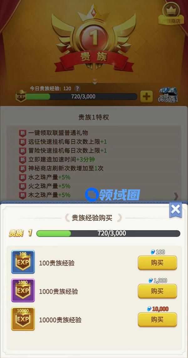 打开贵族界面点击经验条“+”号,即可快捷购买贵族经验,没有任何门槛限制,在急需突破某个贵族等级时,是个极为不错的选择哦。