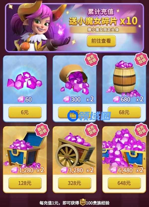 每充值1元即可获得100贵族经验,购买每日福利等现金礼包也能获取对应贵族经验。