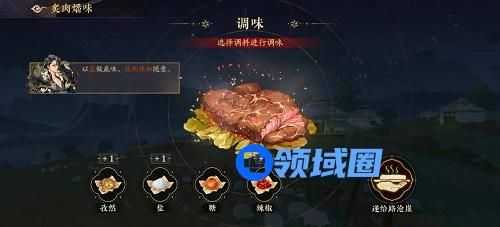 ①【炙肉燔味】烤肉的玩法类似茶点,选择需要烤的肉类,根据路沧崖的提示选择烤肉的火力大小、调料类型和数量。如果是中大火,需在限制时间内进行添柴;调料可以单类多点,不然路沧崖会嫌弃你烤的没有味道。烤肉成功和失败都会获得代币奖励。