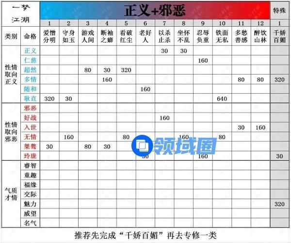 1.首先,正义邪恶这一块,现在好像是叫正义霸道,大差不差,一路提升正义 ,一直到960。把正义向的脸谱收集完就可以洗掉换成邪恶。