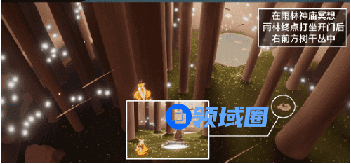 4、在雨林神庙冥想:在雨林神庙打坐开门后右前方树干从中的石碑前光圈处打坐并留言。