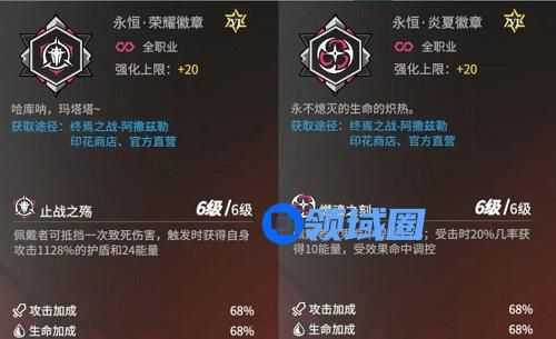 3、徽章方面,因海柔尔注重自身生存保命,使佩戴者免死一次的荣耀徽章与其非常契合,提高效果命中的炎夏徽章也是不错的选择。