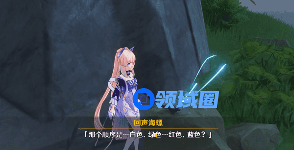 3.我们在这附近的幻境海螺中可以获取开启通路的提示:白绿红蓝,按顺序激活冰元素、风元素、火元素和水元素的方碑。随后空中就会出现一个传送通路,我们通过风元素攻击激活风车机关直接就可以飞到半空中进入传送门。