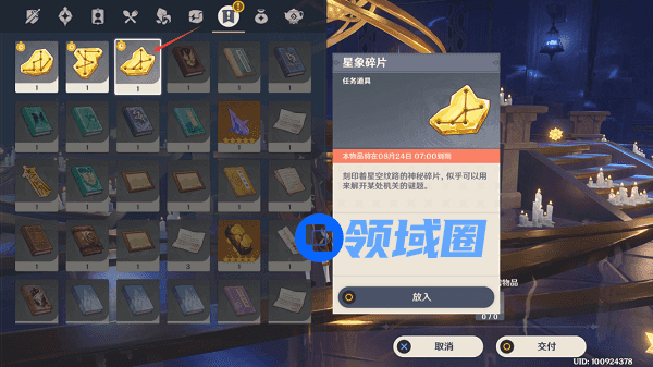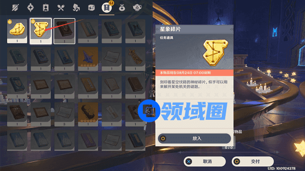 2.拿到3个星象碎片后,来到中间的放置器中选择放置上方