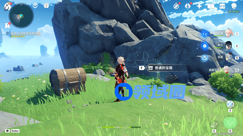 (5)登岛后可以看到普通宝箱,里面有30原石,同时完成任务