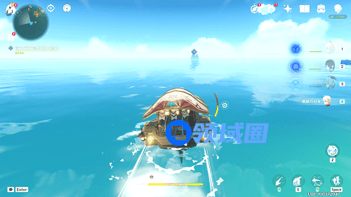 (4)我们需要乘坐浪船,来到四叶草标记处,在航行期间,我们可以抬头看,朝着天上的圆环前进