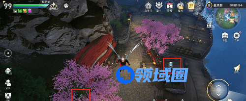 银宝箱(725,229)浮生若梦房顶上的宝箱摸完,下方有几棵银装素裹的树,另一个宝箱在树下。