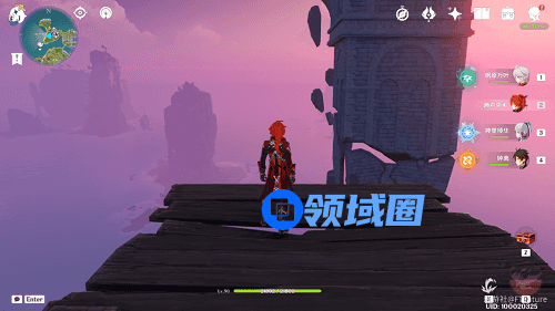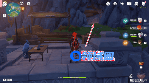 从传送锚点出发,直走穿过山洞,来到下图所示位置,搭乘这里的电梯去上层。