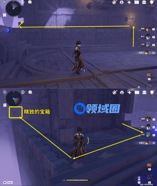 【③】顺时针连环机关第1个在这里。(下图中标注了宝箱1)