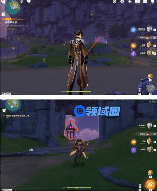一路往上走到顶,在忽悠了两个傻乎乎的守卫之后,我们翻看圣国的咏唱第二卷进入第二个秘境之中。