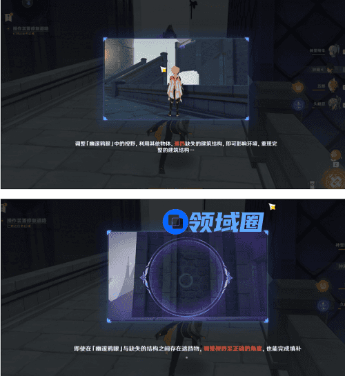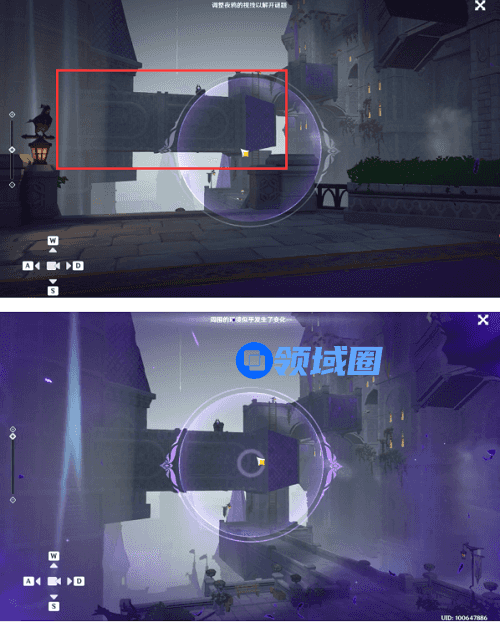 操作方形装置将塔的短臂移动过来,然后走上平台使用幽夜装置完成填补(装置调整到最左边,视角放到最大)