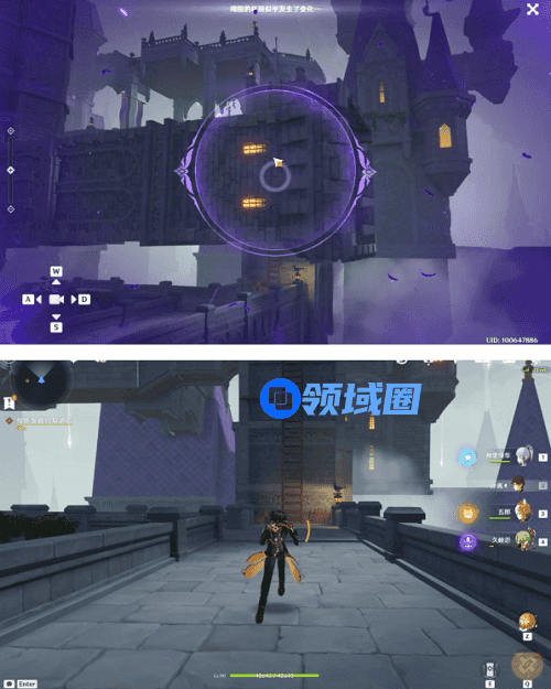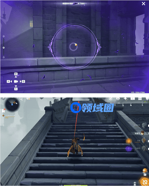 完成之后我们来到下方,操作幽夜装置完成填补,然后顺着楼梯一路往上爬