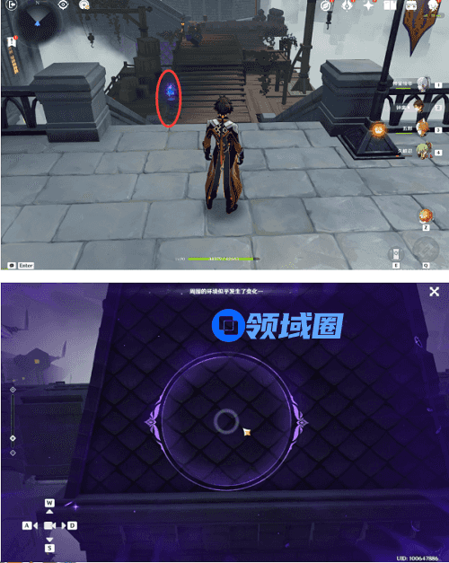 在上面我们发现了一个幽夜装置,调整装置将面前的柱子对其,完成填补。