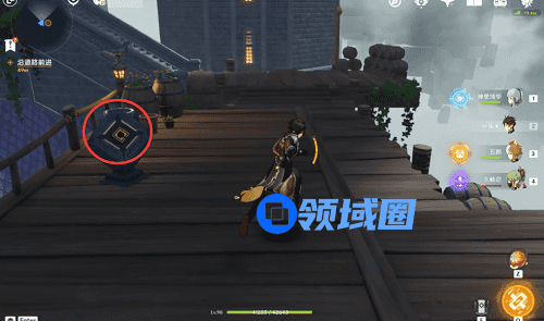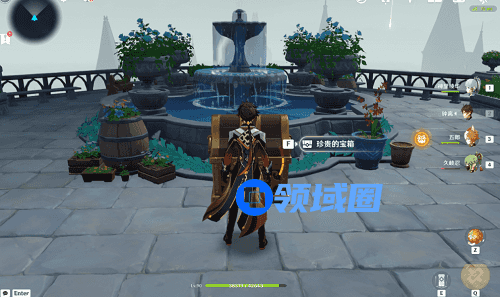 在走到这个爬梯处的时候先往咱的右手边方向走,顺着栈道一路上旋,在道路尽头发现我们的第二个宝箱。