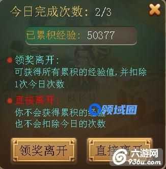 在途中选择【领奖离开】的玩家将会消耗本次参与次数并领取本次副本至今累积的经验值然后离开副本。