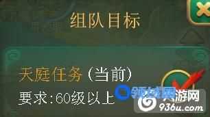 当玩家等级达到60级后,将开启天庭任务副本。这时,玩家可以自行创建队伍或者加入其他玩家的队伍,组成由5名60级以上的玩家构成的五人队方可进入天庭任务副本。