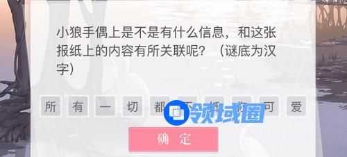 3、小狼手偶上是不是有什么信息,和这张报纸上的内容有所关联呢?(谜底为汉字)