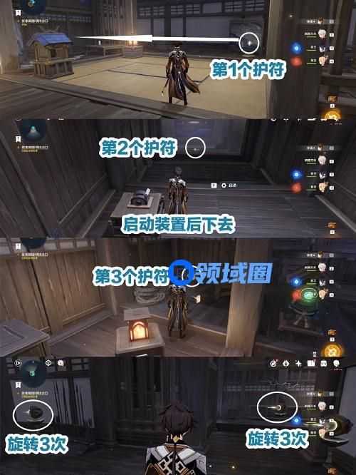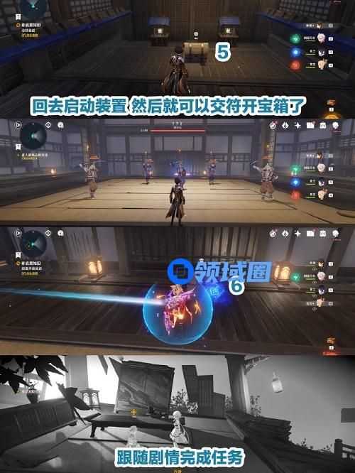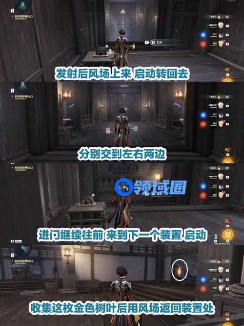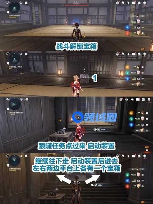 10、随后当我们解锁完所有的未知房间以后,我们再次回到庭院,拾取信物,将其一次放入正确的位置当中,我们便可以开门遇到万叶啦,途中还可以获得第八个宝箱。