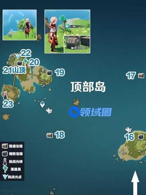 4、不知道宝箱位置的参考上图就可以了,按照上图的标记就可以找到23个宝箱了,以上就是原神海岛限时宝箱全收集路线图攻略了,希望可以帮到大家。