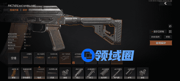 3.那么,到底怎样才能花最少的钱,获得最大的提升呢?前面说过,枪托、前握把可以提供大量的垂直、水平后坐力加成。所以,在改装时这两种配件最重要,也最贵。以AK74N为例,使用AK转伸缩+AR延长芯+卡宾工业托+卡宾枪托垫,造价约2.5w。却仅仅只将垂直、水平后坐力提高升了17、34,每提升一点需要500柯恩币。而使用AK系列FAB后托,只需3K,就能提升7、15,每提升一点仅需130柯恩币。
