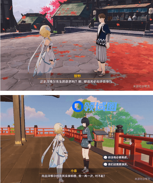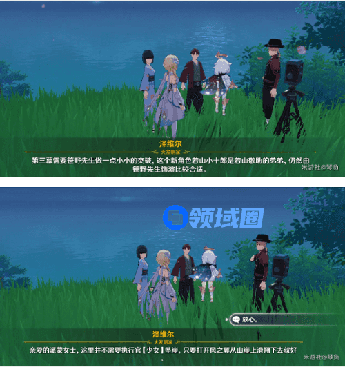 几个混混表示要钱才给泽维尔地方拍摄,派蒙则表示这几个混混真可怜,哎谁让他们碰上了我们呢。一番友好的“身体交流”之后,终于可以正常拍摄了,几个混混也加入到群演当中。(这场戏没我们的台词戏份,只有打戏)相互夸赞之后,就是等待明天第三幕的拍摄了。