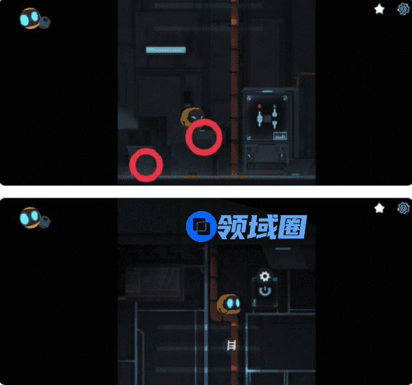 三、第三关,关掉电源,像图一一样关掉这个位置电源,脚下踩得箱子是从左下角画圈那里拿的