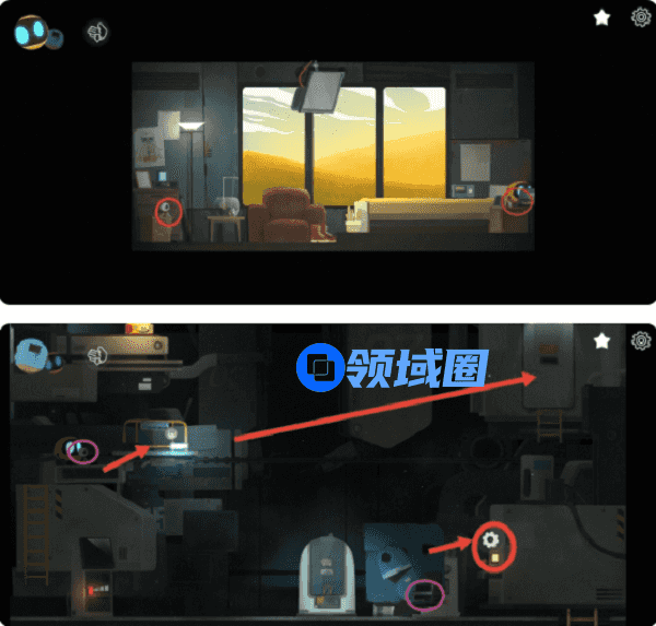 来到了一个非常漂亮的房间,能帮到我们的是床头柜上的平板,和箱子上的摄像头。我们操纵艾彼将这两个拿出来,并将平板交给迪迪。迪迪操纵机关,艾彼拿着摄像头前往监控室。