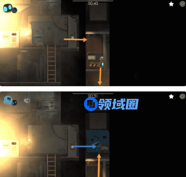 6.之后我们就要带着杰米跑路了。我们来到电梯,发现电梯卡住了,操纵艾彼进入电梯,先点击向下,让迪迪走到电梯的上方。再选择上升逃出实验室。中途会遇到落石卡住电梯,我们操纵迪迪点击落石就能逃出生天了。