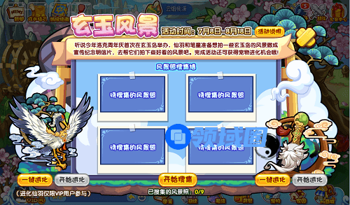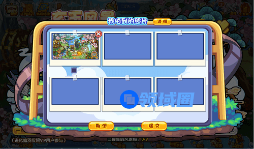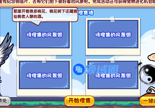 6、每天最多可以提交4张照片进行收集,累计9张则开启一次进化机会,可自己任意挑选:华丽狼毫、载阳仙鹤(仅限VIP用户参与)进行进化,完成后可以再次进行任务开启进化。每个宠物仅能免费进化一次。