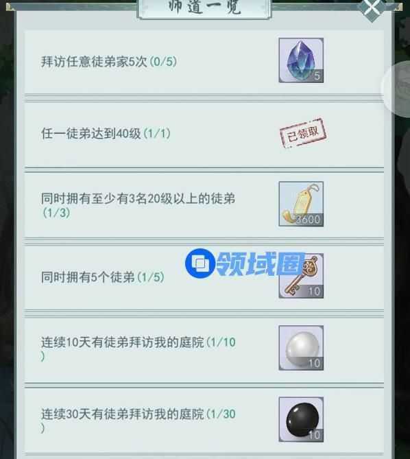 1.为徒任务只需要40级就能拿完一次性奖励,想做祖师的拿完奖励就脱离门派自立。
