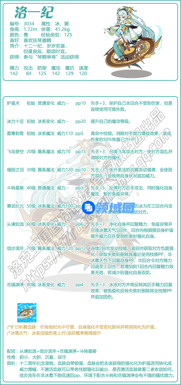 3、简析:十二周年纪念宠物。血脉自带锁强,血脉会把本该获得的强化化为护盾进而转化成威力增幅,不激活血脉可以带老技能强化玩输出,是否激活血脉就看二者收益如何。信步流年在非冰雹下能低速回pp,环境下配合斗转和岳镇渊淳会有不错的骚扰能力。