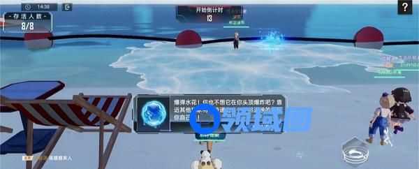 3.我们要做的就是尽可能地躲避头上拥有水花的玩家,让其爆炸淘汰。如果水花在自己头上,可以根据自己的技能选择策略,把水花转移到其他玩家头上。