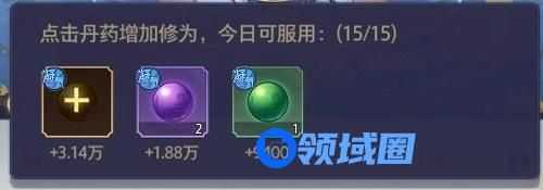 (1)服药:在修炼界面的右侧中间,点击可以看到目前有的灵药。每天服用灵药的次数有上限。