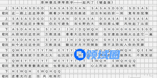1、不知道怎么弹奏的玩家可以参考上图的图谱来进行演奏。