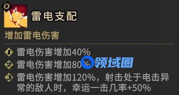5.最后是雷,(触发这个你需要先给怪挂上一层雷元素异常[前置],然后后续再造成伤害才能触发;再就是增加幸运一击,这里把雷排最后是因为猫天赋没有加幸运的,所以这点幸运没啥大用,除非配合秘籍能提高一点)。