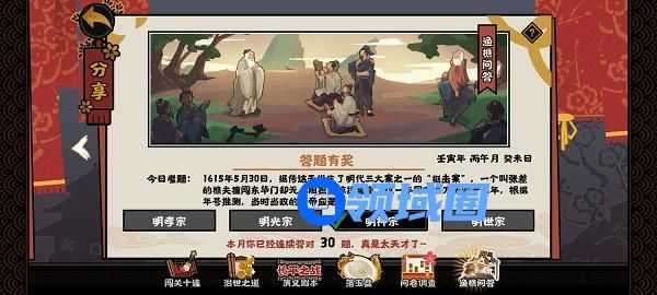 2.正确答案为明神宗,玩家们选择第三个选项即可获得奖励。
