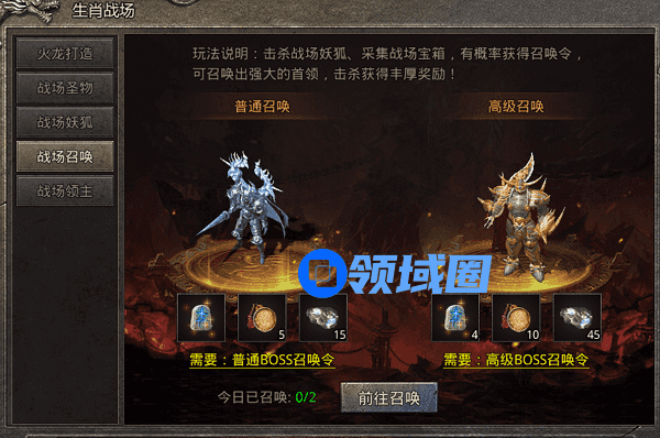 3.开服5天后,生肖战场会出现战场宝箱、战场妖狐、战场领主,开启更加精彩纷呈的争夺玩法。成功击杀怪物后,还会随机掉落疗伤神石,生命之息、功勋等丰盛奖励。
