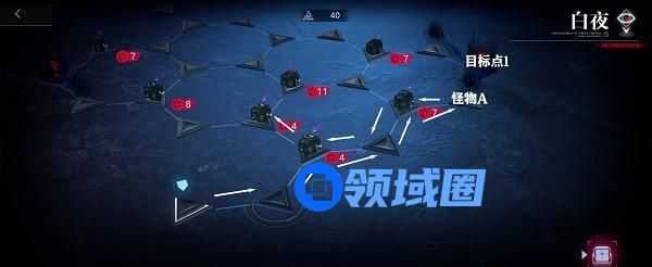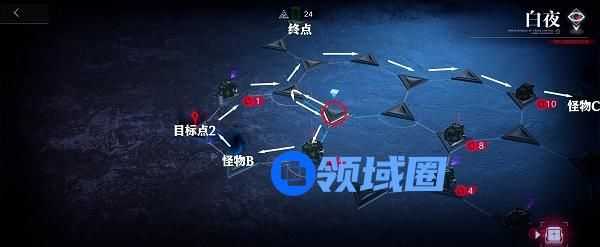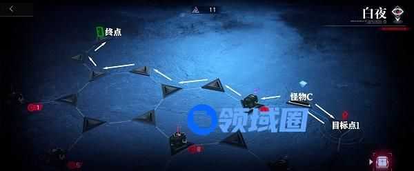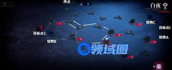 4.前往右侧目标点1,之后返回,一路前往终点即可(结束时剩余理智值2)。