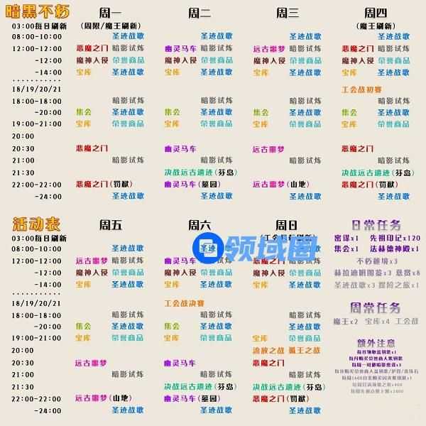 暗黑破坏神不朽日常任务活动表大全最新