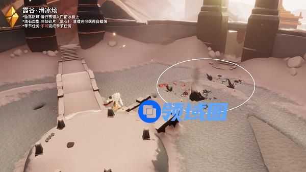 1、霞谷溜冰场,冷却碎片(黑石),清理完可获得白蜡烛。