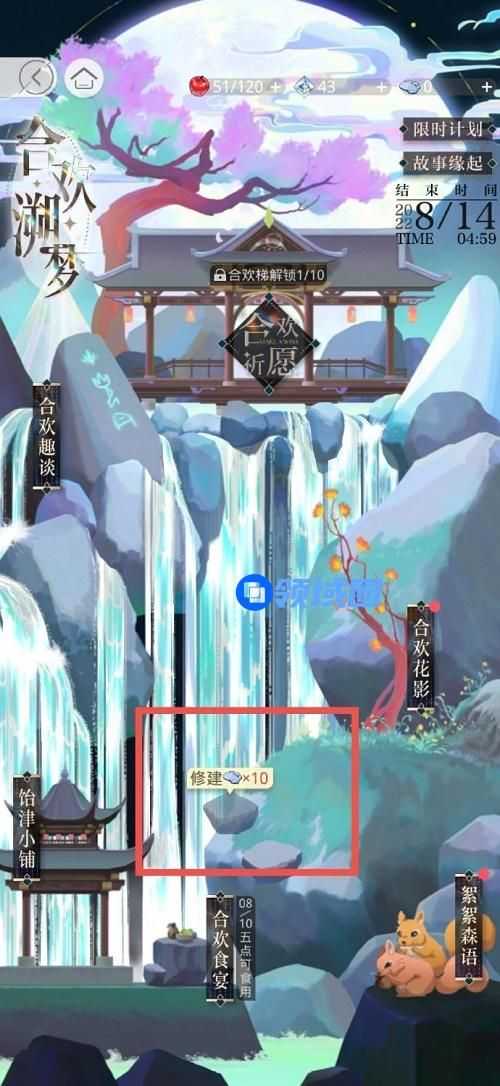用青石板铺筑台阶来进行合欢祈愿,青石板只能依靠每天合欢趣谈来解锁。