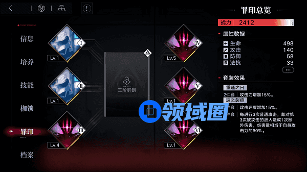 4、装备成套的罪印可激活额外的套装效果。套装效果最少需要2件同套装的罪印来进行效果的触发,当玩家携带4件同套装的罪印时,可同时触发2件套和4件套的属性。